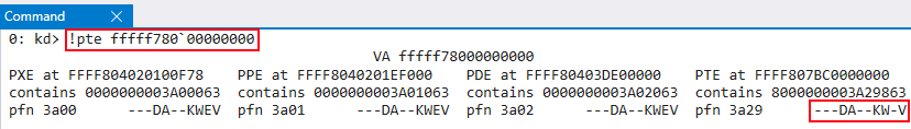 Data Execution Prevention (DEP), referred to as No-eXecute (NX), was one of the first mitigations that forced researchers and adversaries to adopt additional methods of exploitation. DEP prevents arbitrary code from being executed in non-executable portions of memory. It was introduced both in user mode and kernel mode with Windows XP SP2, although only for the user-mode heap and stack, and the kernel-mode stack plus pageable kernel memory (paged pool). It took many more releases, up to and including Windows 8, for most kernel-mode heap memory, including resident memory (nonpaged pool) to become non-executable. Although considered to be an “older” mitigation, it remains one that all vulnerability researchers and adversaries have to take into consideration. DEP’s implementation in kernel mode and in user mode is very similar in that DEP is enforced on a per-page memory basis via a page table entry. A page table entry, or PTE, refers to the lowest-level entry in the paging structures used for virtual memory translation. PTEs, at a very high level, contain bits that are responsible for enforcing various permissions and properties for a given range of virtual addresses. Each chunk of virtual memory, referred to as a page (and typically 4KB), is marked as either executable or writable — but not both at the same time — via its page table entry in the kernel. Utilizing the !address