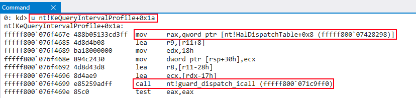 A series of bitwise operations and assembly functions are performed, which results in checking the bitmap to determine if the function within the indirect function call is a valid function within the bitmap. An invalid function will result in a process termination. kCFG has a very similar implementation in that indirect function calls are checked by kCFG. Most notably, this “breaks” the primitive that adversaries and researchers have used to execute code in context of the kernel by invoking nt!KeQueryIntervalProfile