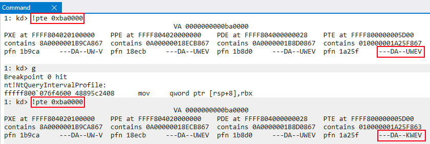Before kernel-mode DEP was extended to cover the resident kernel heap on Windows operating systems, the PTEs for such allocations were marked as RWX