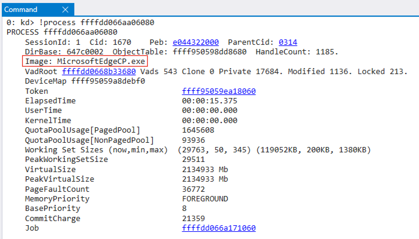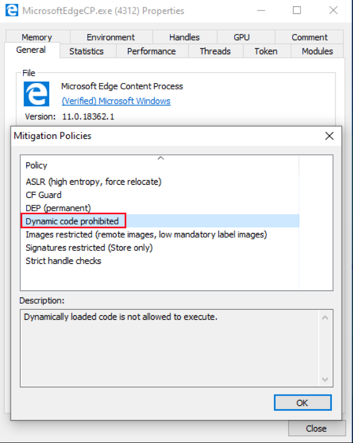 . Let’s examine an Edge content process (MicrosoftEdgeCP.exe