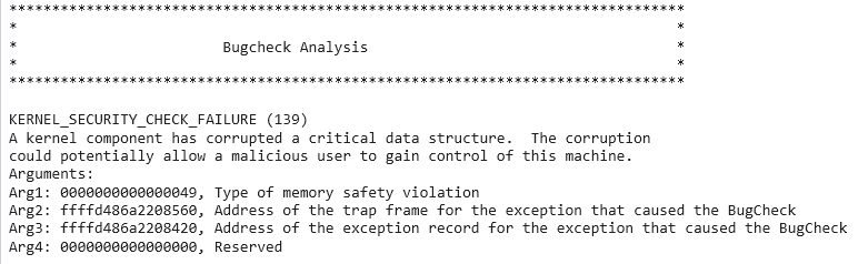 Shifting focus slightly, when a kernel-mode PAC violation, identical to the previous scenario, occurs, a KERNEL_SECURITY_CHECK_FAILURE